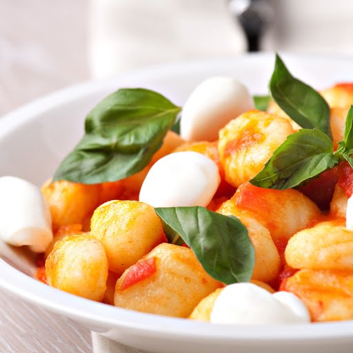Potato filled gnocchi with mozzarella, fresh tomatoes & basil leaves$13.0013.00 USD
